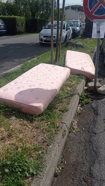 Materassi abbandonati a Via dei Tirreni a Marina di Cerveteri che si trasforma in una “discarica a cielo aperto”