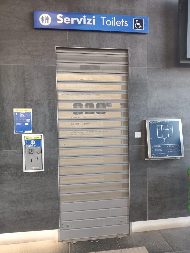 È stato scassinato il pannello che chiude il meccanismo di apertura dei bagni della stazione. E che custodisce anche la cassetta con i soldi inseriti per fare aprire la porta. Ricordiamo che, per usufruire del servizio offerto dai bagni della stazione, bisogna introdurre una moneta di un euro.