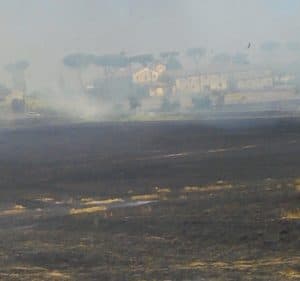 Ad andare a fuoco un grande campo di sterpaglie, il cui fumo nero era visibile anche a chilometri di distanza.