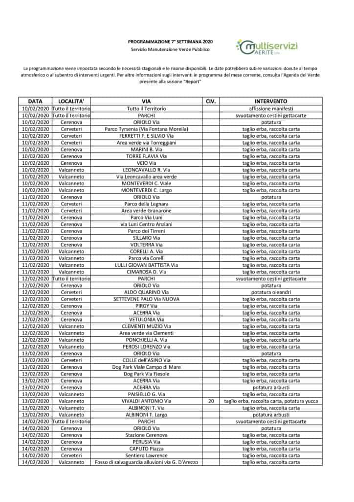 Multiservizi Caerite, online la programmazione sul verde-