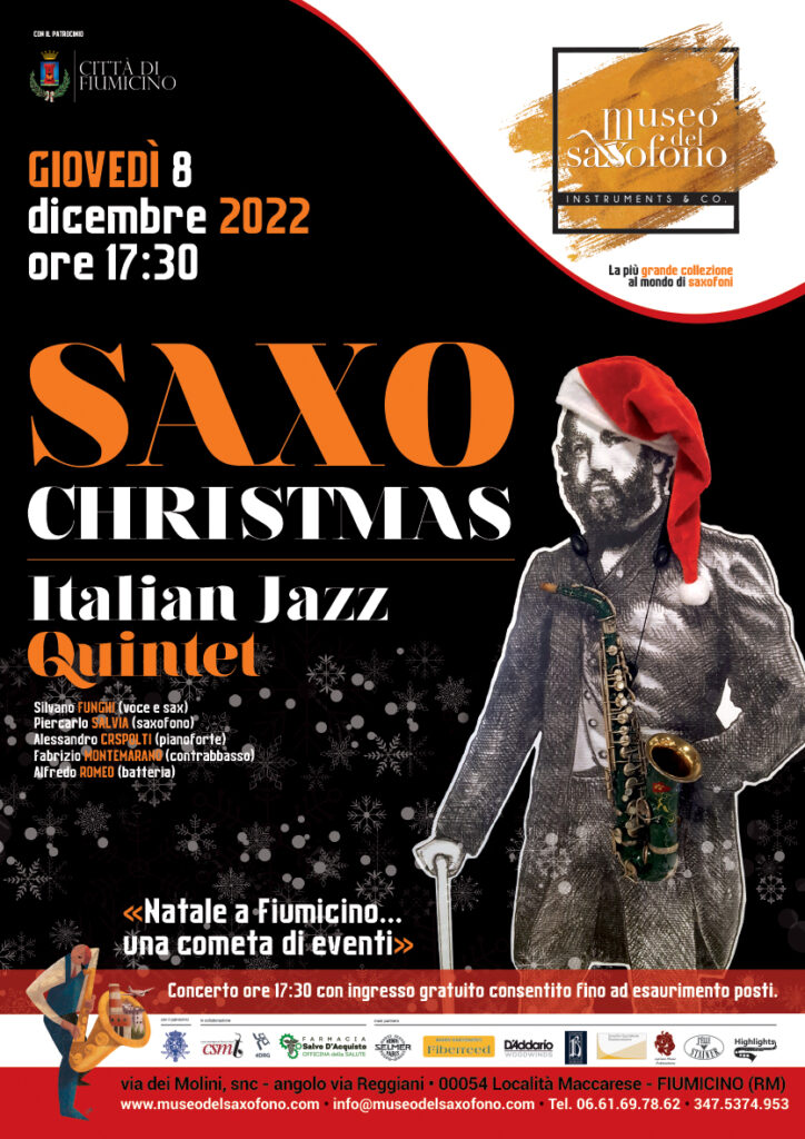 Anche quest’anno il Museo del Saxofono di Fiumicino si riveste di luci e colori per accendere la magia del Natale in città. Giovedì 8 DICEMBRE nelle sale del museo è infatti di scena l’Italian Jazz Quintet con lo spettacolo SAXOCHRISTMAS, un fascinoso connubio tra voci ed ance attraverso i classici del jazz classico e gli standard natalizi più famosi.