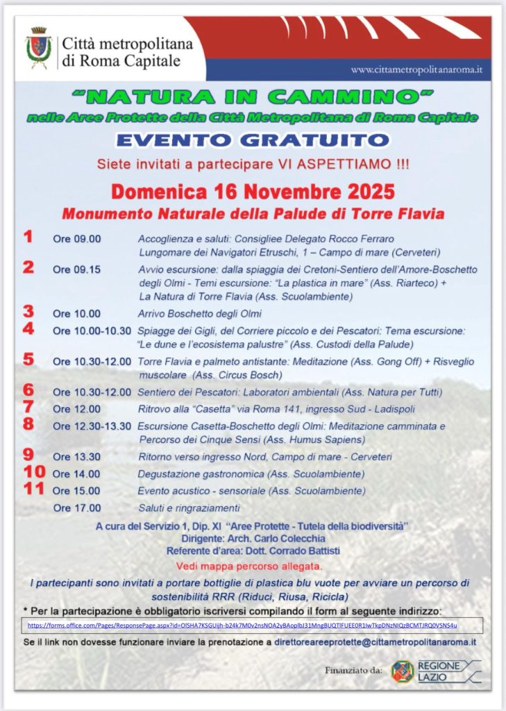 L’appuntamento è per Domenica 16 Novembre 2025 al Monumento Naturale della Palude di Torre Flavia.