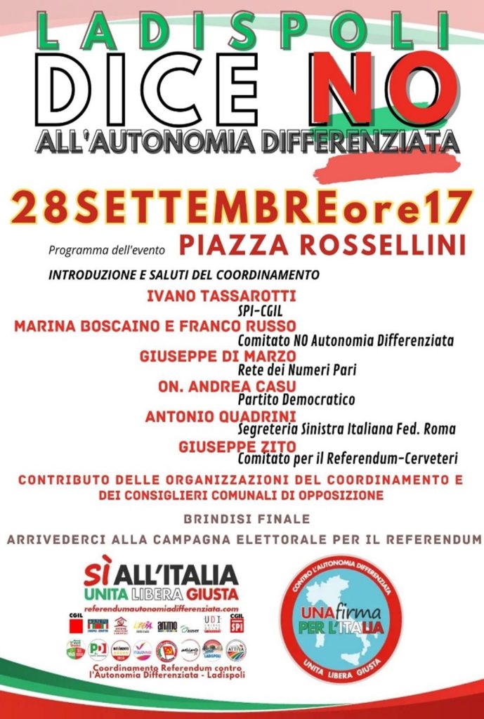NO all’autonomia differenziata, sabato manifestazione a Ladispoli