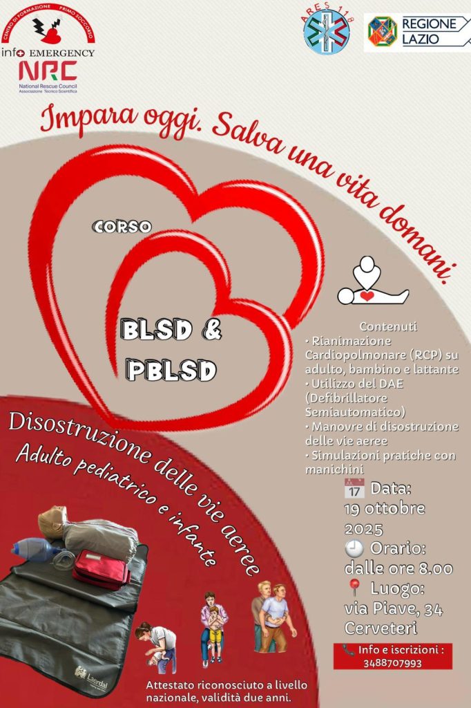 Questo l’obiettivo del nuovo corso di BLSD & PBLSD, Disostruzione delle vie aeree per adulto, pediatrico e infanti che si svolgerà a Cerveteri domenica 19 ottobre a partire dalle ore 08:00 in via Piave n.34, nella parte alta del paese.