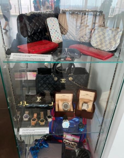 Nelle teche, che attualmente espongono campioni di abbigliamento, accessori di moda griffati ed elettronica di consumo, rappresentativi dei numerosi sequestri operati dai