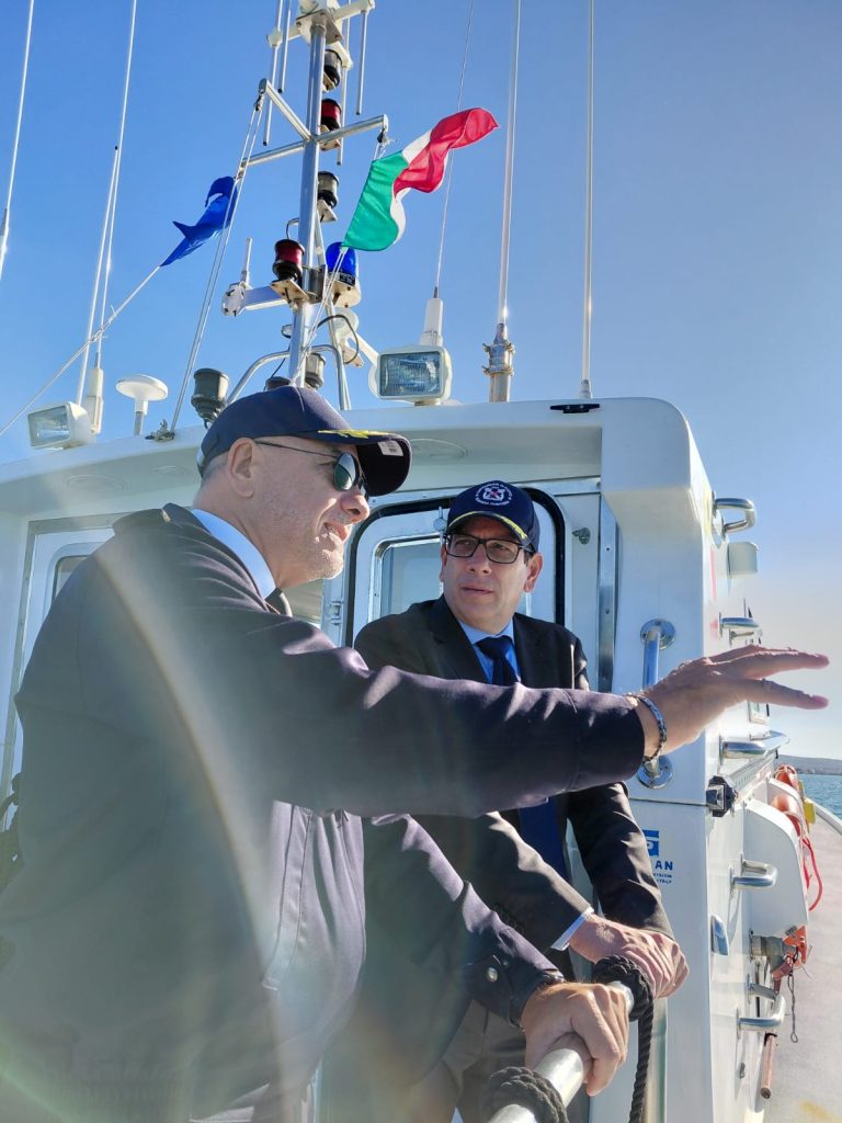 Durante l’uscita, i vertici delle due istituzioni hanno avuto modo di osservare direttamente lo stato dell’arte dei lavori in corso all’interno del porto, con particolare attenzione alle infrastrutture strategiche e alle aree oggetto di interventi di sviluppo.