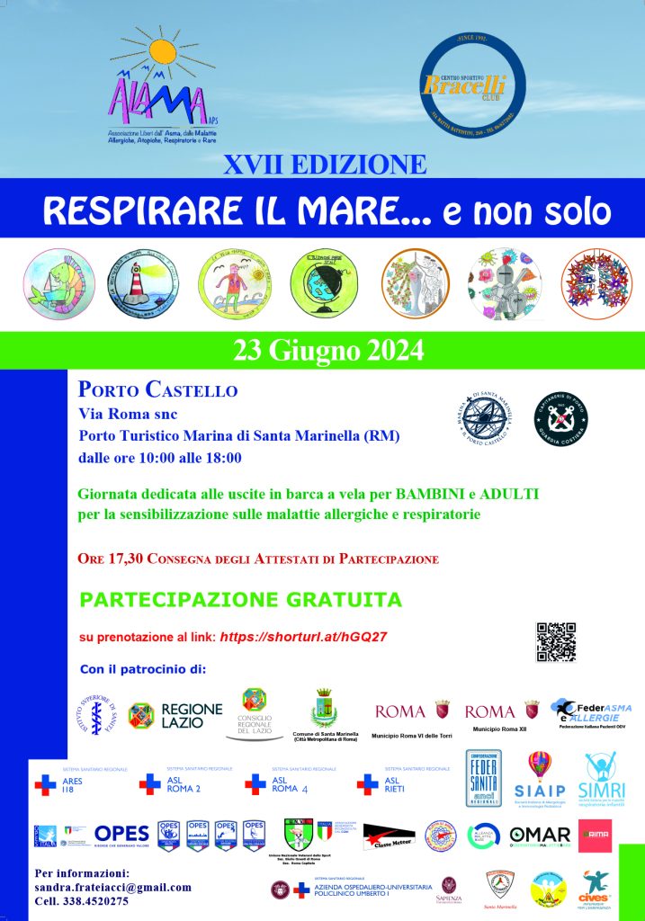 L’iniziativa è organizzata dall’Associazione Laziale Asma e Malattie Allergiche (ALAMA) e da SSD BRACELLI CLUB – Sezione Nautica Maestrale, affiliata OPES, in collaborazione con la Scuola di Allergologia e Immunologia Clinica, Sapienza, Università di Roma e Day service Medicina predittiva genere specifica e cronicità, Policlinico Umberto I.