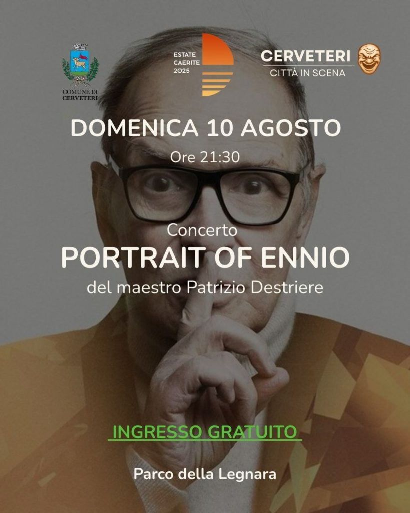 “Portare in scena i grandi brani del Maestro Morricone non è mai un qualcosa di semplice, una musica che è patrimonio mondiale alla quale ognuno di noi, per un motivo o per un altro, ne siamo fortemente legati – ha dichiarato Francesca Cennerilli, Assessore alla Cultura del Comune di Cerveteri – non sarà dunque un semplice omaggio alle musiche di Ennio Morricone, ma bensì una rivisitazione jazzistica, un lato della musica che seppur lontano dalla sua visione artistica è sempre stato presente. Portrait of Ennio vuole essere il ritratto che racchiude le mille sfaccettature di un compositore complesso e geniale qual è Ennio Morricone e lo faremo con un quartetto di musicisti davvero straordinario che da tempo, sta portando questo spettacolo sui più prestigiosi e rinomati palcoscenici italiani”.