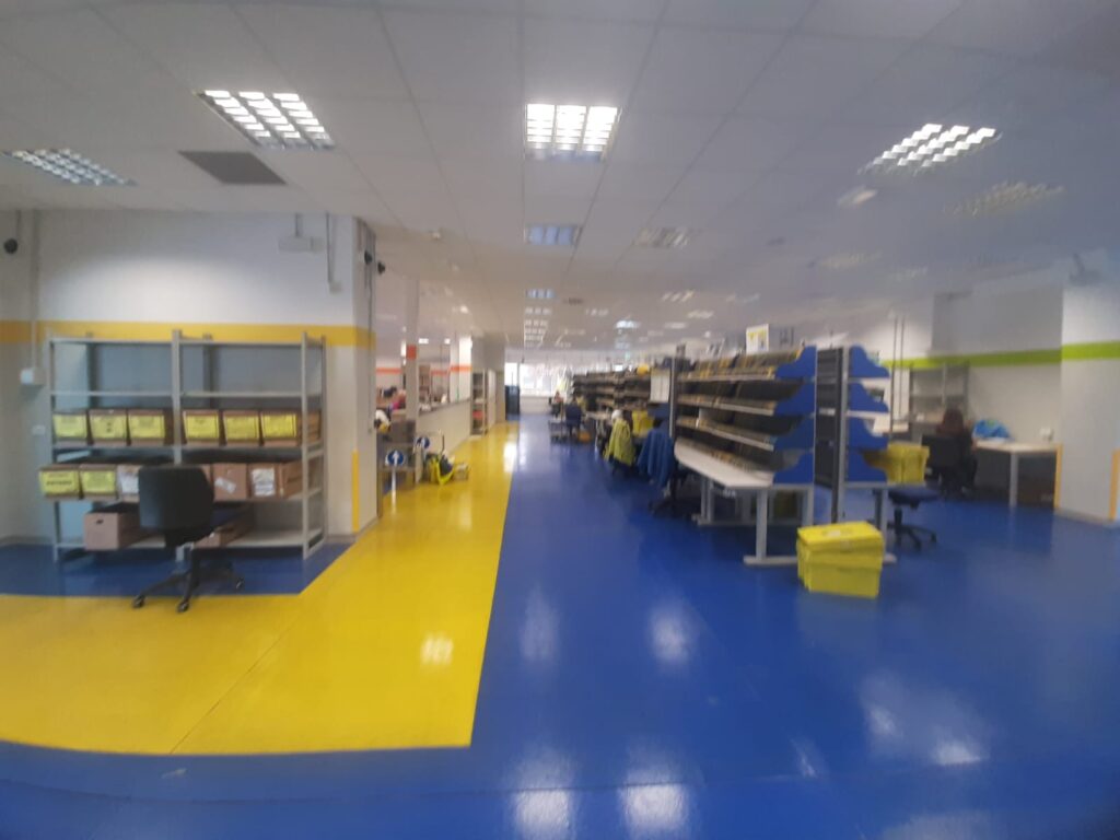 Il Centro dispone di attrezzature di ultima generazione che permettono soprattutto di ottimizzare il lavoro degli addetti. Di nuova concezione gli strumenti di lavoro, quali i carrelli per la movimentazione interna della posta, le bilance e i casellari, che consentono ai portalettere di ordinare e gestire la corrispondenza con più velocità. Inoltre sono state adottate tutte le misure per lavorare in sicurezza con interventi di igienizzazione e sanificazione della sede e dei mezzi aziendali.