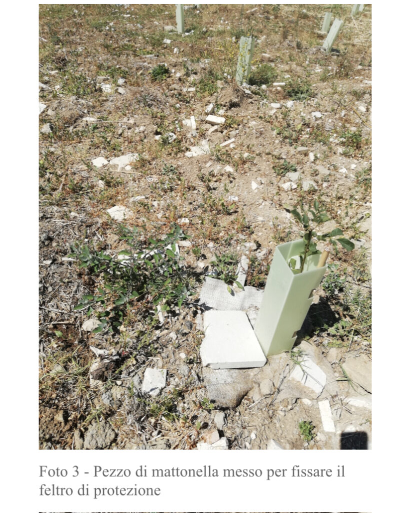 Già ad inizio maggio abbiamo notato che una parte delle piante era secca e ancora non c’erano state le ondate di calore di giugno e inizio luglio. Appena fatto il trapianto le piante sono state irrigate? Noi crediamo di no, altrimenti non ci sarebbero state già tante piante secche. Se è stato fatto è stato in modo inappropriato. Il 10 di luglio per vedere quante piante erano ancora in vita, abbiamo isolato tre superficie di circa 750 metri quadri e controllato le piante. Il primo controllo è stato fatto su la superficie situata infondo a Via delle Primule. Su 98 piante messe a dimora 53 erano secche e 45 vive. Il secondo controllo è stato fatto su una superficie posta alla fine di Viale Mediterraneo. Le piante totali messe all’interno di questa superficie sono 116, di queste 61 sono secche, le restanti 55 sono composte in parte da piante agonizzanti e in parte da piante ancora verdi. Il terzo controllo è stato fatto su una superficie situato a monte del deposito di gas per il quartiere, le piante messe a dimora su questa superficie sono 120, di queste solo 12 sono vive e 108 sono secche. In pratica più del 62 % delle piante sono già morte e del restante 38% una parte è destinata a morire, e solo una parte si salverà se verranno irrigate al momento giusto. Se questa è la situazione vuol dire che qualcosa non è andata per il verso giusto tra cui anche una procedura di piantumazione inadatta e sicuramente non ha funzionato la cura post trapianto.