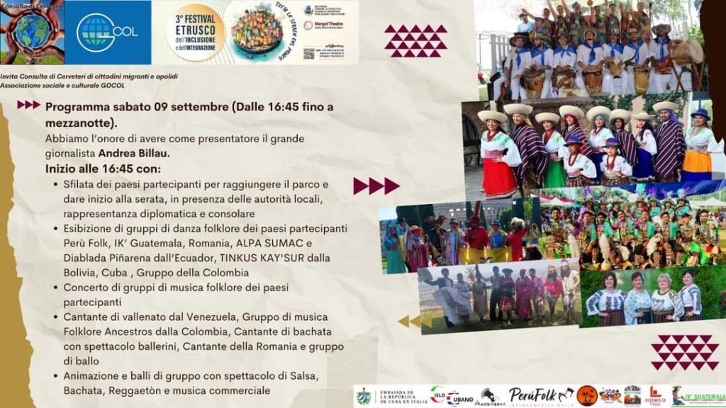 Programma di Sabato 9 settembre del Festival Etrusco per l’Inclusione e l’Integrazione