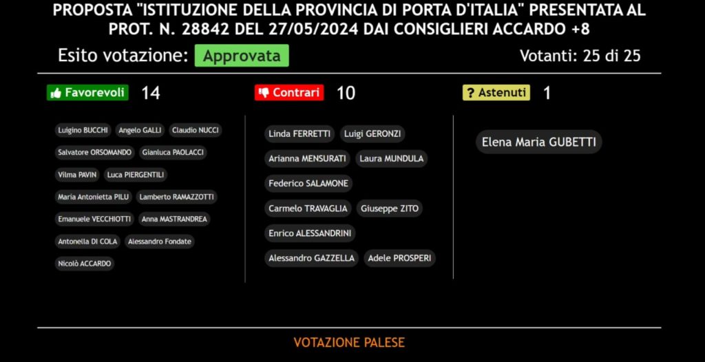 La discussione è approdata in aula su richiesta dei consiglieri, Accardo, Bucchi, Orsomando, Ramazzotti, Paolacci, Piergentili, Pavin, Fondate e Vecchiotti. I consigli comunali di Ladispoli, Civitavecchia, Santa Marinella e Tolfa si erano già espressi al riguardo con esito favorevole. Oggi arriva il voto favorevole anche di Cerveteri. 14 favorevoli ovvero l’opposizione più Di Cola, Pilu, Galli, Nucci e Mastrandrea. 10 i contrari, si è astenuto il sindaco Elena Gubetti.