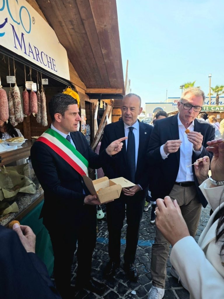 Prima della cerimonia, il primo cittadino ha voluto immergersi nel cuore pulsante dell’evento, passeggiando tra gli stand e nella suggestiva Piazzetta dei Sapori. Qui ha incontrato le Pro Loco provenienti da tutta Italia, impegnate a raccontare e condividere le eccellenze gastronomiche regionali, trasformando la Sagra in un vero e proprio viaggio tra sapori e tradizioni.