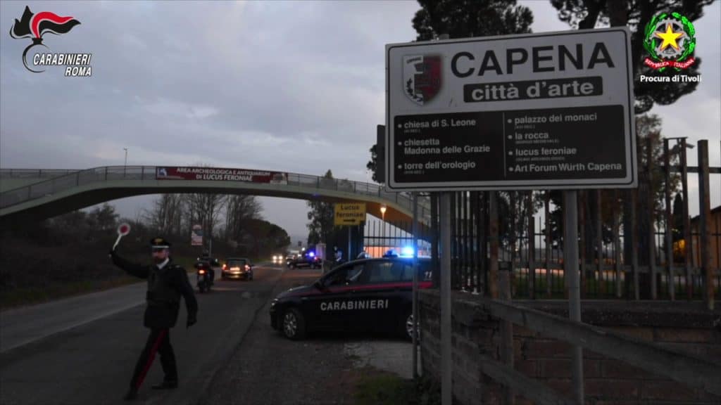 Il provvedimento trae origine da un’indagine, condotta dalla Stazione Carabinieri di Capena, iniziata a seguito dell’arresto avvenuto in data 03.04.2019 di due cittadini extracomunitari sorpresi a smontare due veicoli rubati all’interno di un capannone sito nella via Le Cese del Comune di Capena.