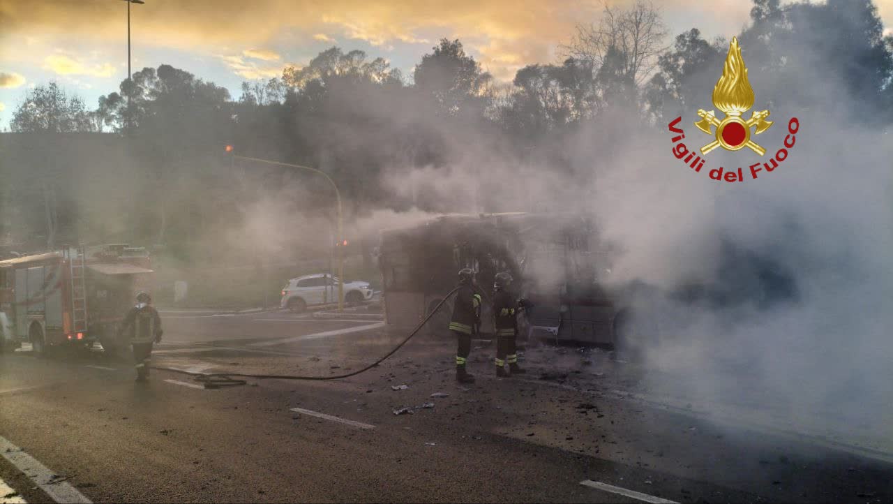 Il mezzo era della Bis Tuscia ed è il secondo in poche ore, della stessa compagnia, ad essere andato distrutto in un incendio: l’altro, impiegato lungo la linea 982, aveva preso fuoco ieri, 14 febbraio.