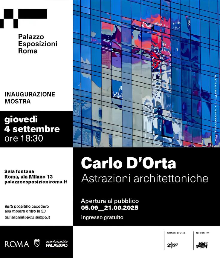 Giovedì 4 settembre 2025, alle ore 18:30, nella prestigiosa cornice del Palazzo delle Esposizioni all’Eur, sarà inaugurata la mostra “Astrazioni Architettoniche”, personale del fotografo e artista Carlo D’Orta, allestita nella suggestiva Sala Fontana di via Milano 13. L’ingresso è gratuito e l’esposizione resterà aperta al pubblico dal 5 al 21 settembre, con accesso consentito fino alle ore 20.