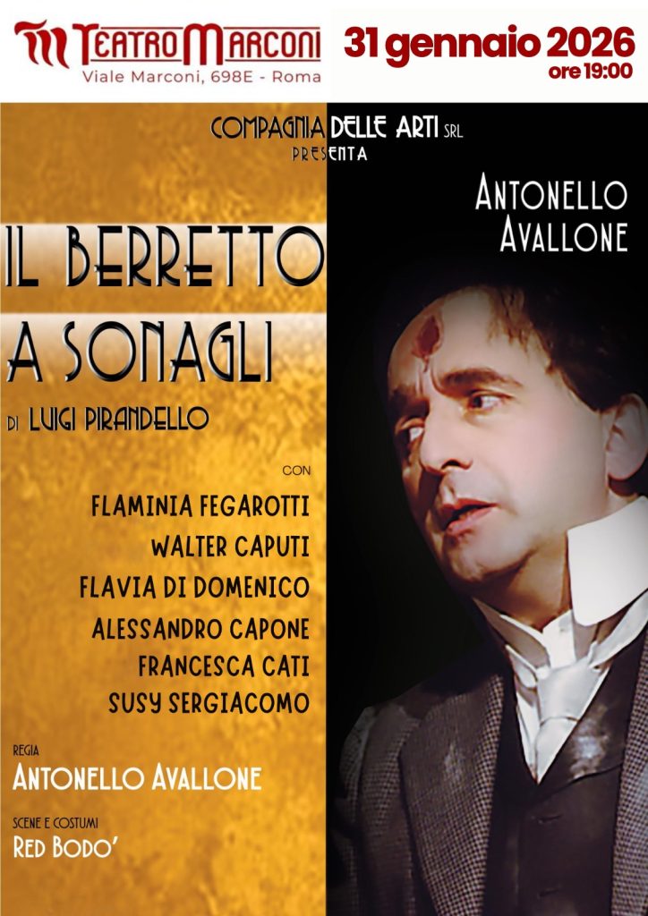 Roma si prepara ad accogliere uno dei testi più emblematici del teatro italiano. Sabato 31 gennaio alle ore 19, il Teatro Marconi a Roma ospiterà Il berretto a sonagli, celebre opera di Luigi Pirandello, proposta dalla Compagnia delle Arti Srl in un allestimento intenso e attuale.