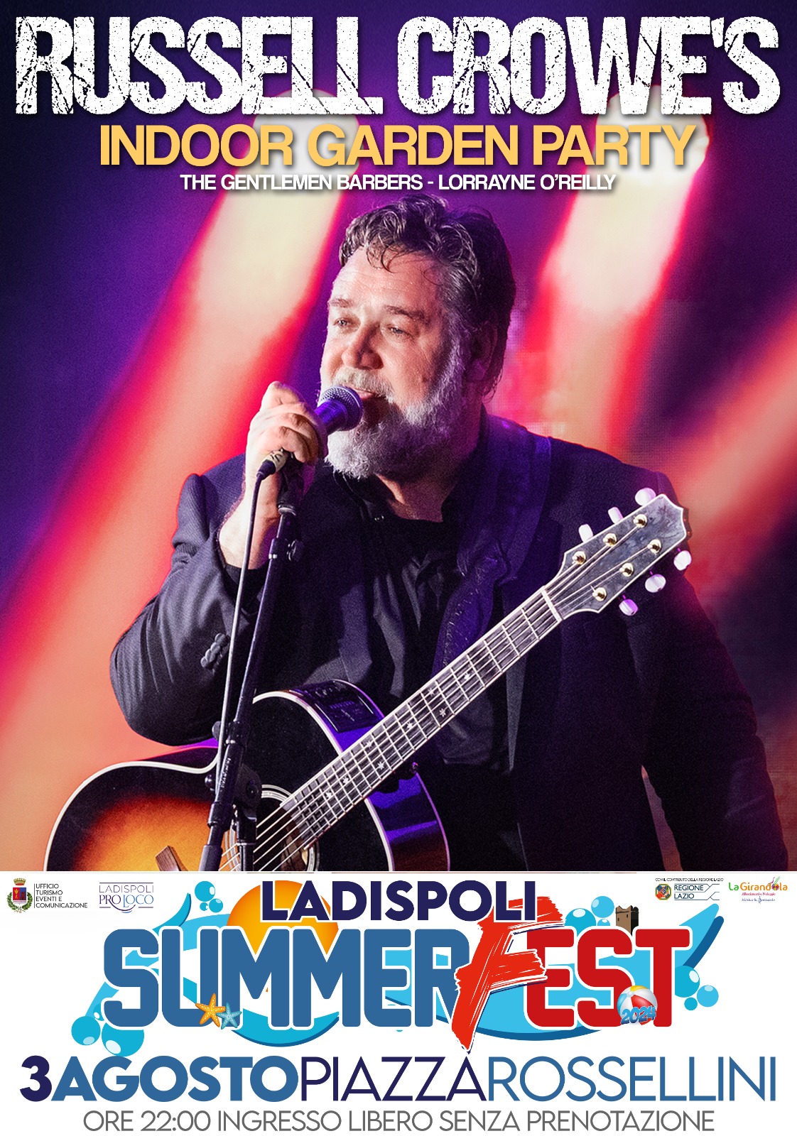 Un concerto live fatto di buon blues e rock, con qualche bella cover a sorpresa, come ha improvvisato Russell nella meravigliosa cornice di Pompei intonando una hit dei Ricchi e Poveri. Il 3 agosto 2024 non prendete impegni: Piazza Rossellini, proprio al centro di Ladispoli e ovviamente in formula gratuita, ospiterà Russell Crowe in un concerto dal vivo con il suo gruppo “The Gentleman Barbers”. Lo slogan di quest’anno è: un’estate da Oscar. Prepariamoci a vivere un weekend dove la nostra città, ovvero tutti noi, saremo i protagonisti di un evento senza precedenti”.