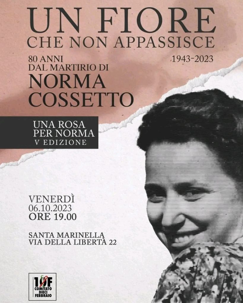Oltre a ricordare lo strazio di Norma, si è anche accennato alle vicende delle terre che videro lo strazio della pulizia etnica perpetrata dai partigiani comunisti titini – i presenti hanno lasciato ai piedi del monumento, una rosa in memoria di Norma e in senso più esteso a tutti i martiri delle foibe.