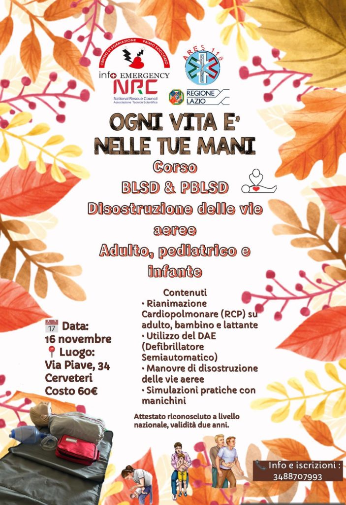 Nuovo appuntamento a Cerveteri con i corsi di primo soccorso Blsd e Pblsd, disostruzione delle vie aeree adulto, pediatrico e infante. Le Dottoresse Martina Abilitato e Angela Fedele, vi aspettano Domenica 16 novembre a partire dalle ore 08:00 nella consueta location di Via Piave n.34 per una mattinata formativa al termine della quale sarà riconosciuto un attestato con validità di due anni a livello nazionale.