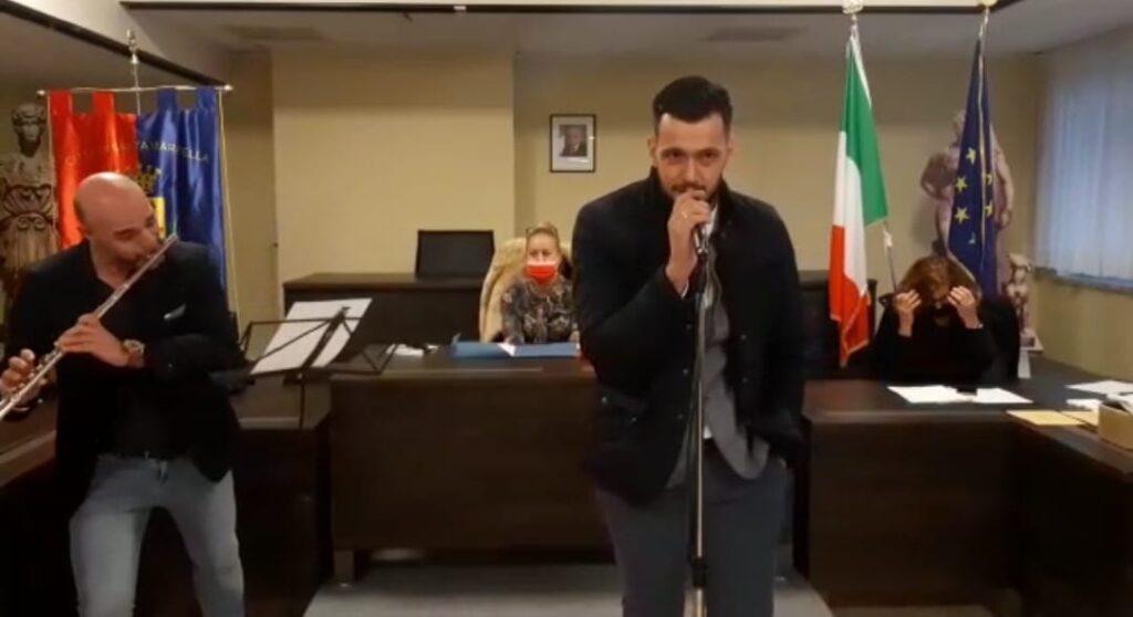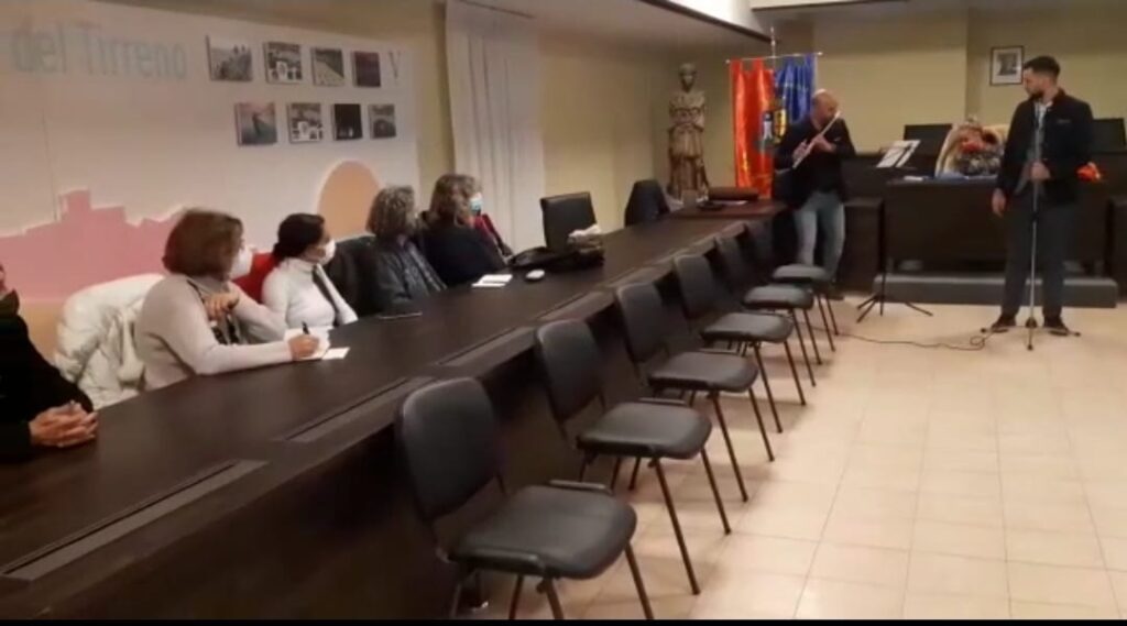 I lavori della consulta si sono avviati nell’aula consiliare Silvio Caratelli, ad introdurre la giornata l’esibizione di Nico Word, giovane poeta santamarinellese che ha voluto dedicare delle rime a tutte le donne vittime di violenza, accompagnato dal Maestro Massimiliano Ferrara, della banda musicale comunale uniti per la musica, Santa Marinella.