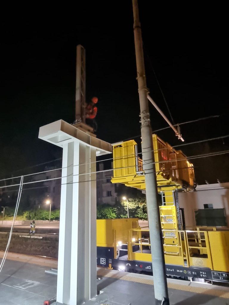 La struttura è stata posizionata lungo tutto il tratto della banchina dove transitano e si fermano i treni in direzione della capitale. La messa in opera dei piloni è stato eseguito nella notte tra lunedì e martedì e ha visto l’interruzione della linea ferroviaria per qualche ora, ripresa poi regolarmente alle tre di notte senza recare modifiche al traffico giornaliero. Si è reso necessario anche l’intervento della Polizia Locale per la rimozione di alcune vetture parcheggiate.
