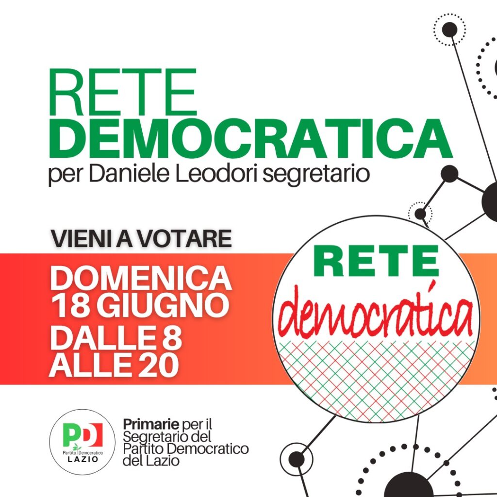 Domenica 18 Giugno, il Partito Democratico di Santa Marinella sarà protagonista di un altro incontro democratico: le Primarie per l’elezione del nuovo Segretario Regionale del Lazio a cui parteciperanno i candidati Daniele Leodori e Mariano Angelucci.