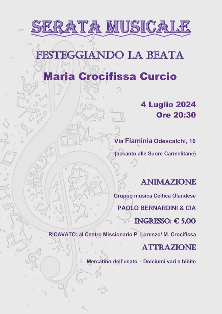Quindi dalle ore 20:30 in Via Flaminia Odescalchi, 10 (accanto alle Suore Carmelitane) si svolgerà una serata con animazione Musica Celtica Irlandese a cura del Gruppo “I GROOT” Mercatino dell’usato e degustazione di dolciumi vari e bibite. Tutta la cittadinanza è invitata a partecipare.