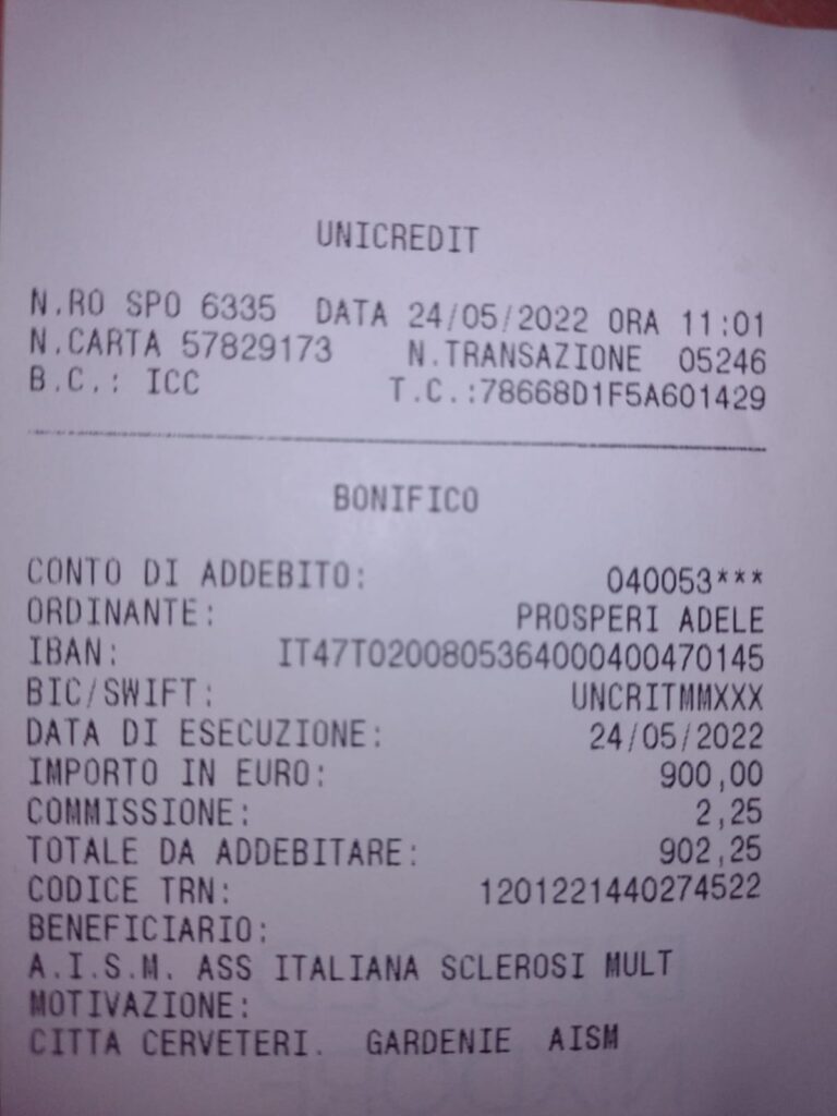“È stata un successo la Gardenia di AISM – Associazione Italiana Sclerosi Multipla a Cerveteri. Sabato 21 maggio i Volontari di Aism sono tornati in Piazza Aldo Moro per l’ottavo anno consecutivo riuscendo a raccogliere una cifra davvero importante a sostegno delle attività di Ricerca Scientifica: ben 900 Euro, che quest’oggi hanno provveduto ad inviare ad Aism tramite regolare bonifico bancario. A tutti i cittadini e commercianti della nostra città, che anche quest’anno con grande calore, generosità e sensibilità hanno sostenuto l’iniziativa, il nostro più sincero e affettuoso ringraziamento. La Ricerca Scientifica è vita, dona speranza. Cerveteri, ancora una volta, si è dimostrata una comunità attenta e solidale”. A dichiararlo sono i Volontari di Cerveteri di AISM – Associazione Italiana Sclerosi Multipla.