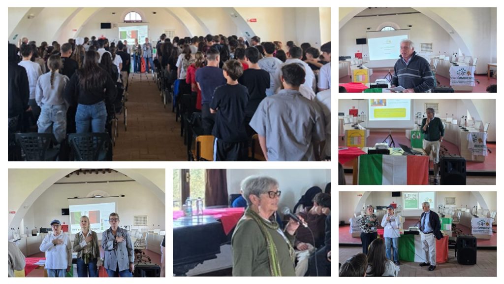 La mattinata si è aperta con la riproduzione del messaggio di inizio d’anno del Presidente della Repubblica Sergio Mattarella seguito dall’inno d’Italia che tutti gli studenti hanno cantato con emozione. Dopo l’introduzione a cura della presidente di Scuolambiente Maria Beatrice Cantieri sono intervenute la Sindaco Elena Gubetti, e l’Assessora alla Cultura Francesca Cennerilli che hanno ringraziato l’Associazione per aver voluto organizzare la giornata finalizzata ad un approfondimento dei temi relativi alla libertà e alla Costituzione.