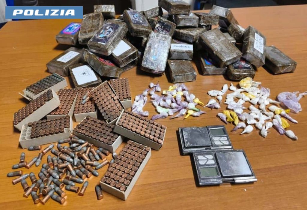 Gli agenti del commissariato Esquilino hanno arrestato un italiano di 72 anni che spacciava dalla sua abitazione; infatti, a seguito di un servizio di osservazione, gli investigatori hanno notato diverse autovetture che sostavano nei pressi dell’abitazione dell’uomo per poi andar via dopo pochi minuti. A seguito di perquisizione domiciliare, sono stati rinvenuti, all’interno di un frigorifero nella cantina di pertinenza, 44 panetti di hashish dal peso totale di 4,5 kg mentre, nella camera da letto, sono state trovate 554 cartucce cal. 22 non regolarmente denunciati all’Autorità di PS. Per tale motivo l’uomo è stato tratto in arresto.