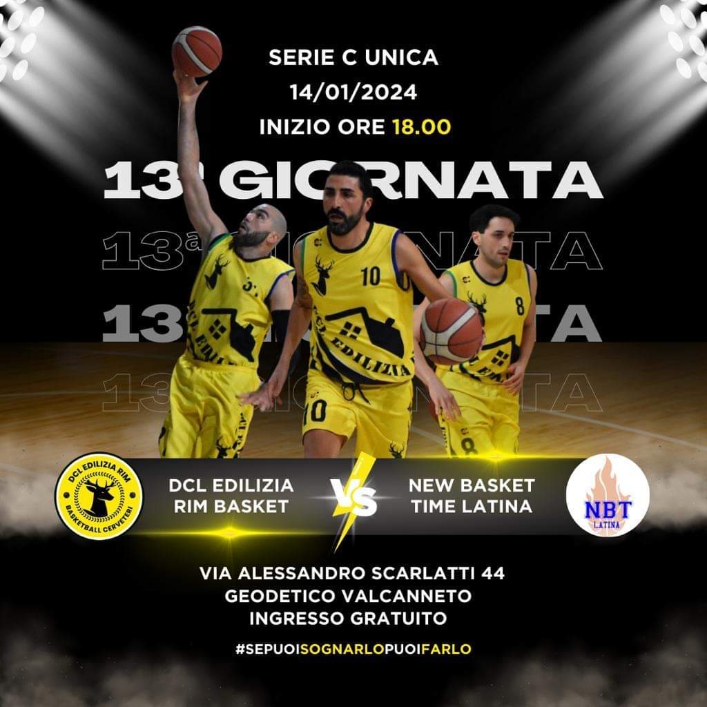 Domani, 14 gennaio, si disputerà la tredicesima giornata della Serie C Unica di basket. L’atteso confronto vedrà opposte la DCL Edilizia Rim Basket e il New Basket Time Latina. L’incontro si svolgerà presso la sede situata in Via Alessandro Scarlatti 44, al Geodetico Valcanneto, con inizio previsto alle ore 18:00.