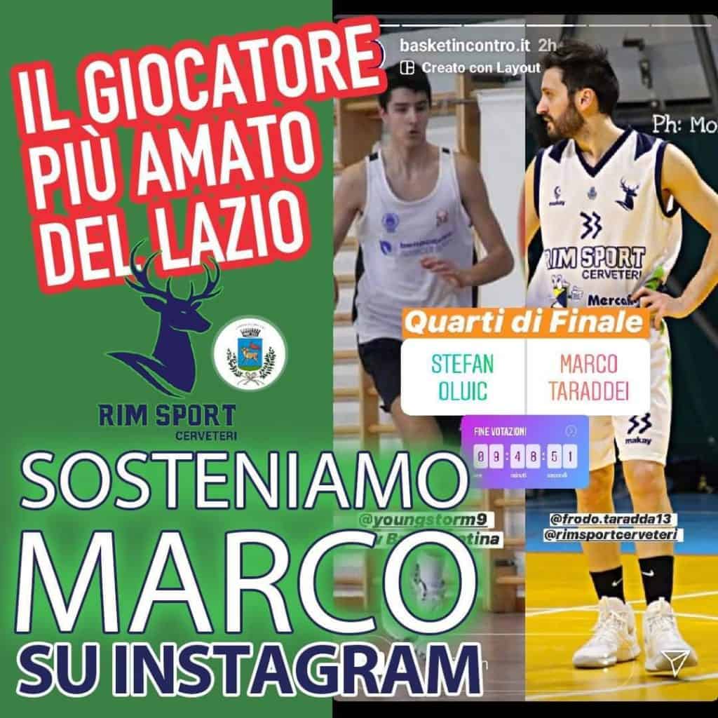 “Marco Taraddei è un cestista della RIM Sport Cerveteri che concorre per il titolo di MLP (giocatore più amato) del Lazio”.
