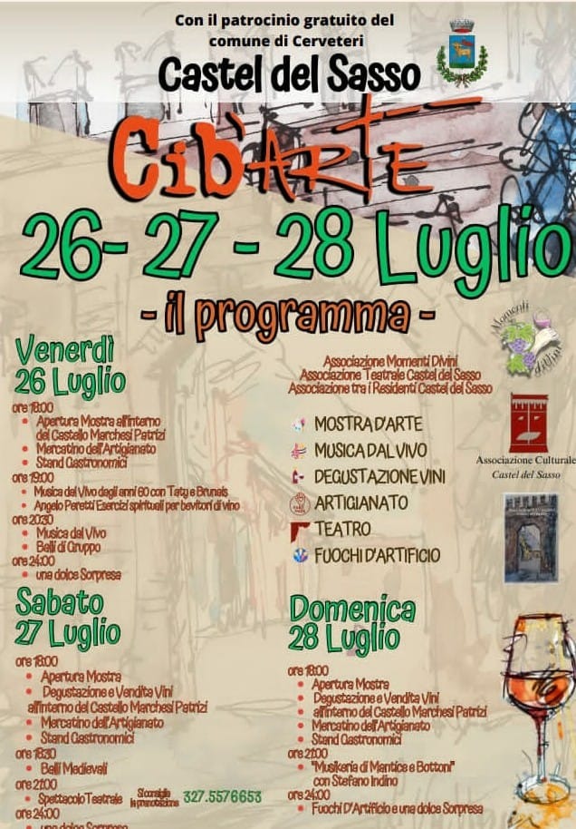 “Oltre all’intrattenimento fatto come sempre di musica dal vivo e teatro – aggiunge il Vicesindaco di Cerveteri Federica Battafarano – non mancheranno le degustazioni dei vini del territorio, curate dall’Associazione Momenti Divini, esposizioni di artigianato locale, mostre d’arte e la possibilità di visitare il Castello dei Marchesi Patrizi del Sasso. Una tre giorni davvero da non perdere, una festa che è alla sua seconda edizione e che ha tutte le carte in regola per diventare una consolidata tradizione della nostra città”