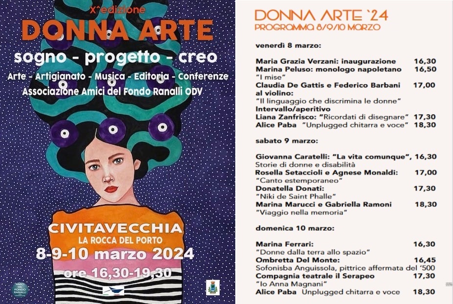 Dall’8 al 10 marzo alla Rocca del porto le artiste di Donna Arte, in collaborazione con gli Amici del Fondo Ranalli, daranno vita alla mostra di artigianato e d’arte e ad una serie di performance culturali.