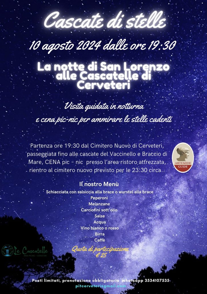 Sabato 10 agosto si terrà un appuntamento speciale nella notte di San Lorenzo presso la splendida cornice delle cascatelle di Cerveteri.