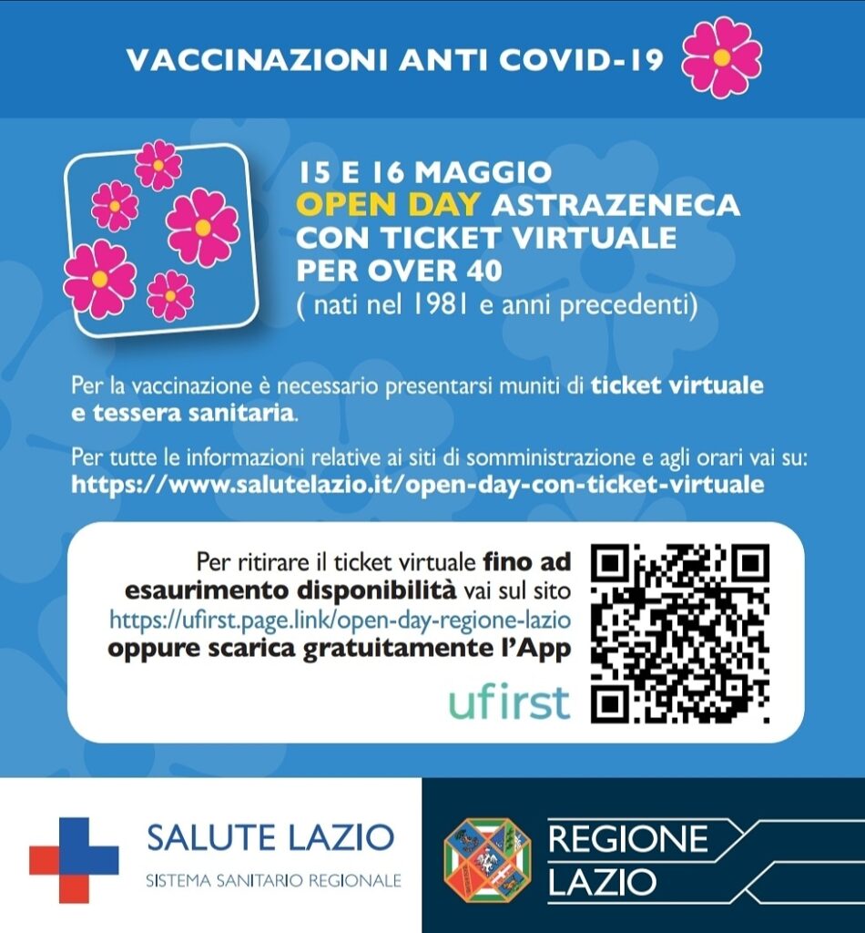 Per ritirare il ticket virtuale, fino ad esaurimento disponibilità, è possibile visitare la pagina web https://ufirst.page.link/open-day-regione-lazio.