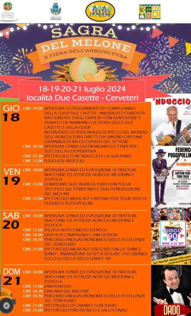 Tutto pronto per la II^ edizione della Sagra del Melone e fiera dell’agricoltura a Valcanneto, i rappresentanti della Proloco due Casette hanno usato parole di soddisfazione e di ringraziamento, nei riguardi di tante persone che si danno da fare per realizzare questo evento: “In sette e con l’aiuto di tante persone che ringrazieremo una ad una siamo riusciti anche quest’anno a realizzare qualcosa di impensabile. Il sostegno dei nostri concittadini è per noi fondamentale. Grazie a tutti davvero da noi della Proloco a tutti gli amici che ci stanno sostenendo”