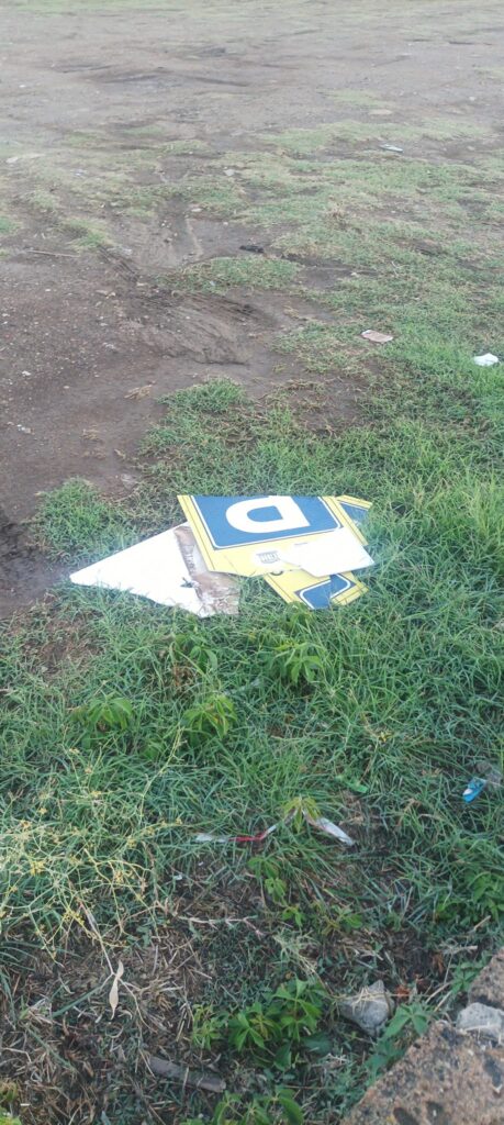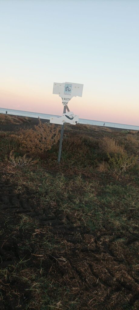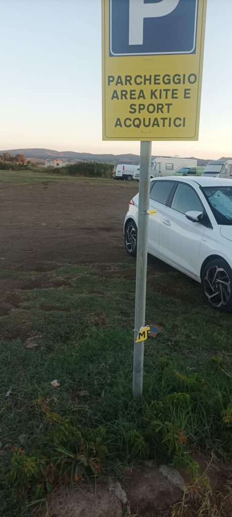 Ignoti hanno danneggiato, infatti la cartellonistica indicante l’area parcheggio e l’area kitesurf.