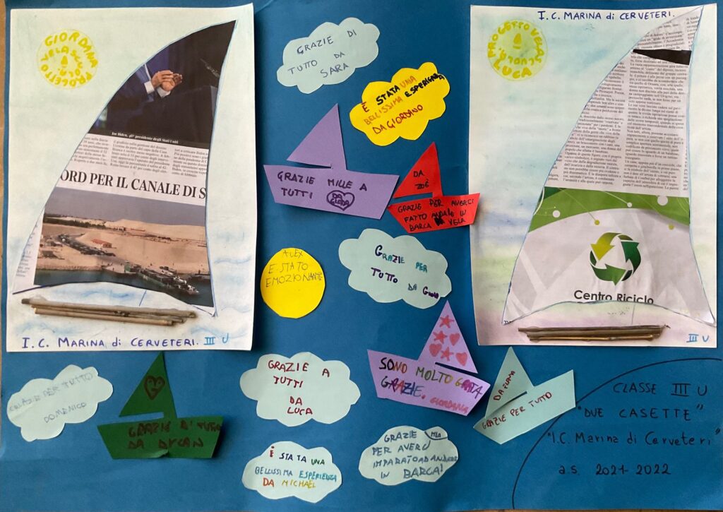 Un momento di commozione si è verificato quando i bambini hanno consegnato al presidente Caferri, quale segno di apprezzamento e gratitudine per il Progetto 2021/2022, un bellissimo lavoro manuale con disegni ispirati al mare ad alla vela.