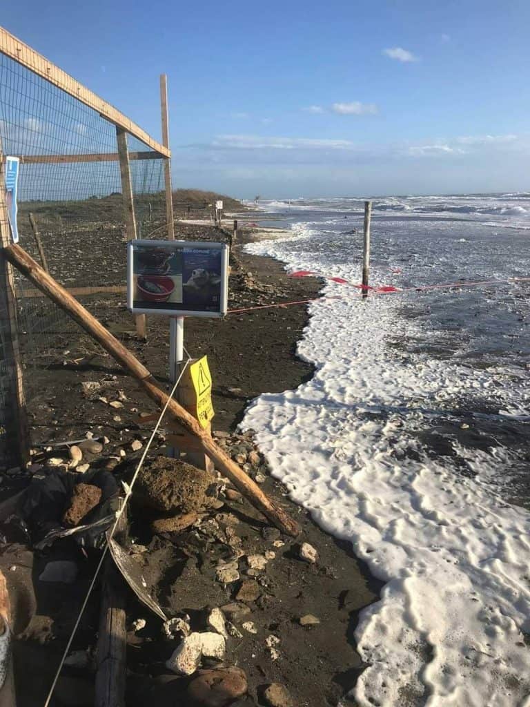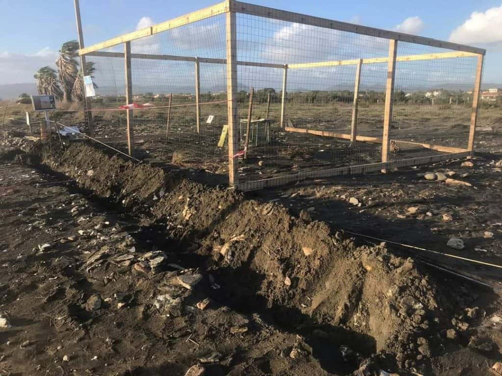 Vento forte e mareggiate, a Torre Flavia scavata trincea per proteggere il nido con le uova di tartaruga marina –