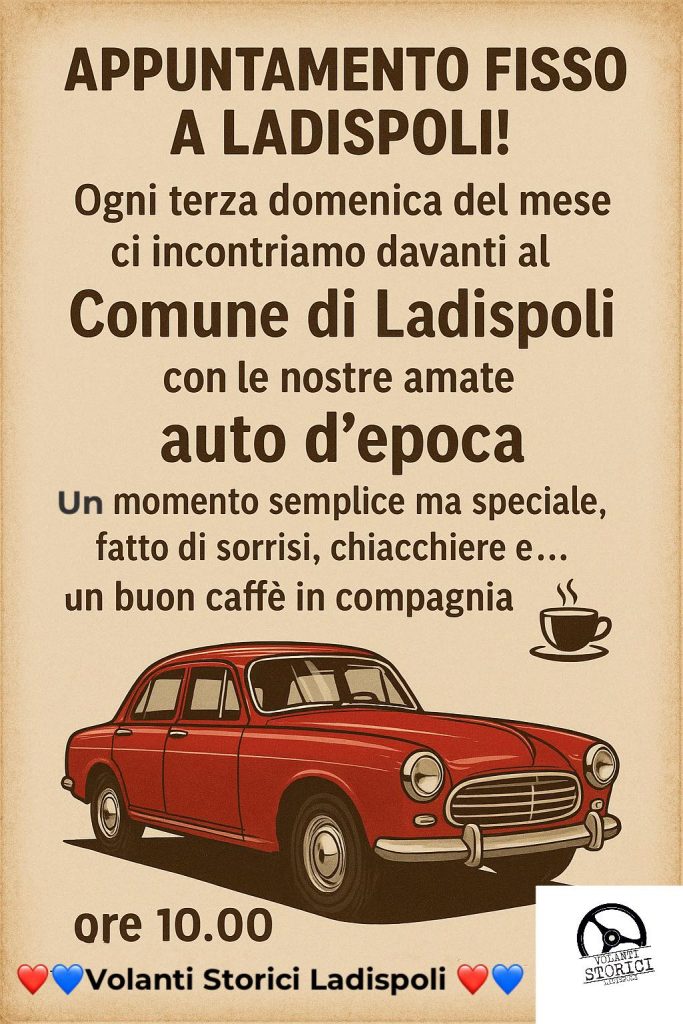 L’Associazione Volanti Storici Ladispoli non propone solo un evento motoristico, ma un modo diverso di vivere la città, valorizzando il territorio attraverso la condivisione e la convivialità. Tra un sorriso, una chiacchiera e un caffè in compagnia, il raduno si conferma un momento semplice ma speciale, in cui il piacere dello stare insieme è protagonista tanto quanto i motori.