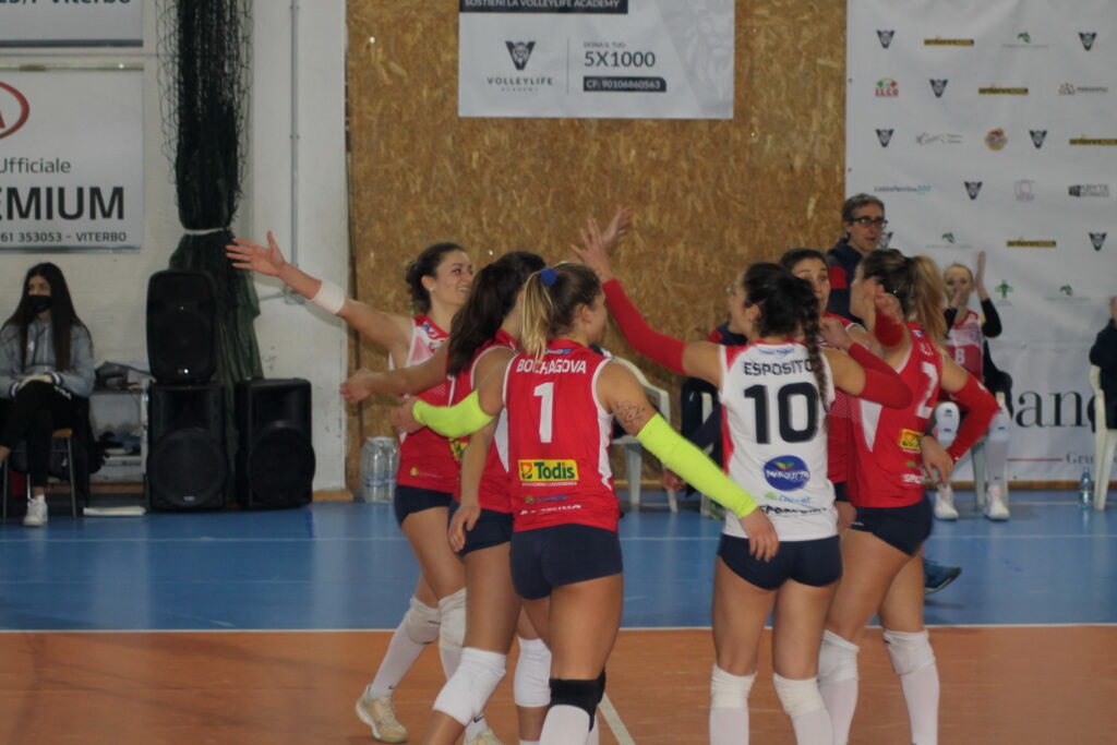 Parte bene il VBC Viterbo nel 1° set (18-16); le padrone di casa in questa fase si dimostrano perentorie ed aggressive. La CivitaLad sembra inizialmente stentare nei suoi affondi fino al 20 pari; poi qualche bordata ben assestata della CivitaLad e qualche incertezza del Viterbo permettono alle ospiti di chiudere il set sul (20-25).Quasi identico l’andamento del 2° set. Si alza ancora il tono agonistico della gara ben orchestrata dalle due contrapposte palleggiatrici, Ceresi e Saia; più determinati gli attacchi, mai banali, ma incisivi e potenti che esaltano le difese che a loro volta non vogliono essere da meno; ne gode lo spettacolo. Chiuso però a suo favore anche il 2° set (21-25), il 3° scivola via senza troppi affanni (14-25). Soddisfatto il tecnico Grechi che tra le tante cose belle messe in mostra dalla sua squadra non è di poco conto l’ottima prestazione di Giulia Baffetti al suo esordio stagionale. Nell’altro incontro del girone L1 il Grosseto si è imposto sul Tivoli per 3-1 ed affianca, a punteggio pieno, la Margutta CivitaLad in testa alla classifica. Il prossimo appuntamento è fissato per Sabato, 6 Febbraio, ore 18.00, ancora in trasferta e di fronte ci sarà proprio il Grosseto.